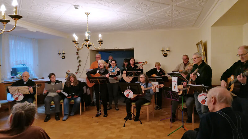 Singen zur Gitarre in der Seniorenpension Keppler in Ricklingen Mittwoch, 12. Februar 2025 Die ConGitars spielten im Speisesaal des Seniorenheims unter der Leitung und Moderation von Jürgen Lindenau einen bunten Potpourri an alten Schlagern für die Bewohner. (Bilder von Wilfried Kelter)